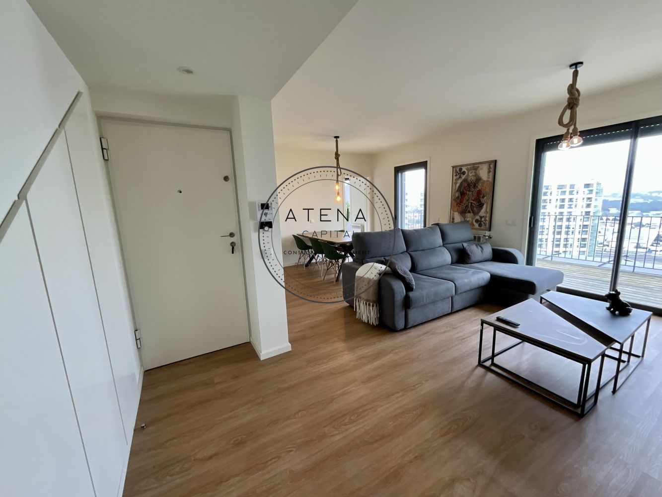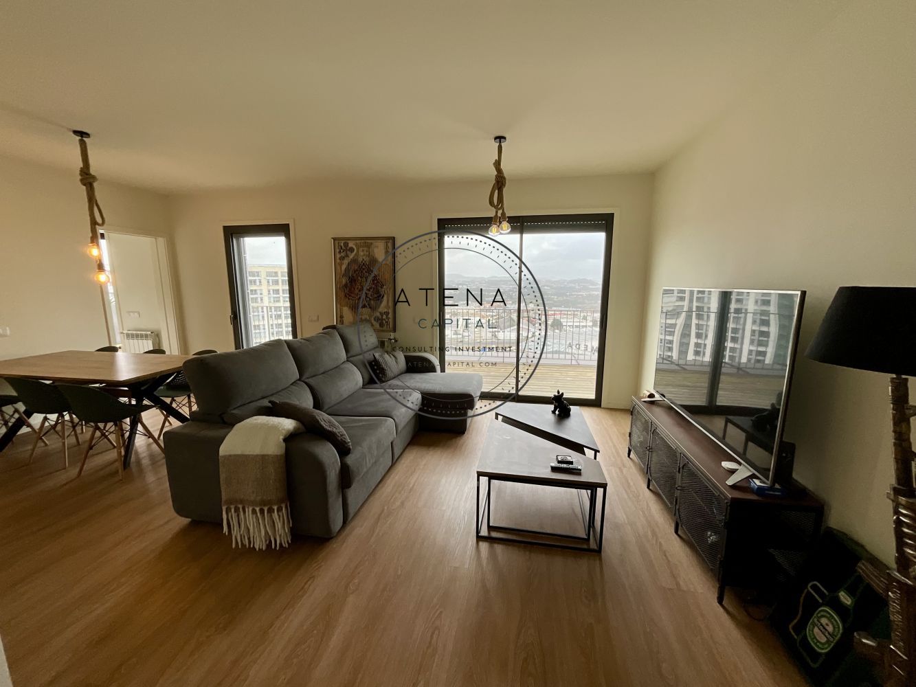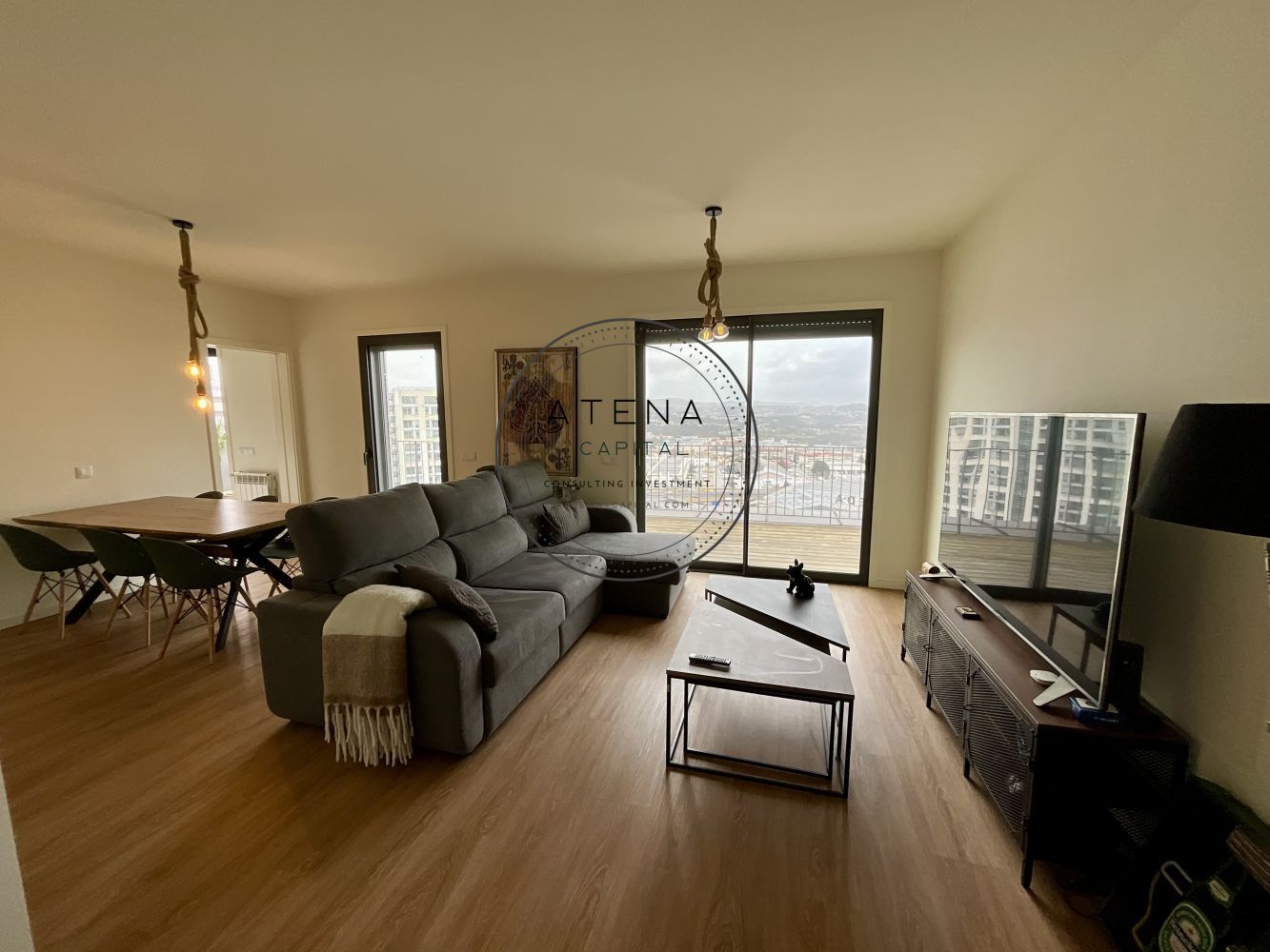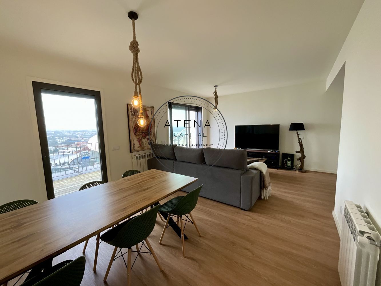 Apartamento T2 mobilado para arrendamento na Residência Antas Green, Porto. Apartamento situado no 7.º andar, com uma terraço excecional de 31 m², com vista desafogada para o rio e para o Estádio do Dragão (interior do estádio). Exposição solar Este. O imóvel tem 100 m² de área interior e é composto por sala ampla, cozinha totalmente equipada, dois quartos, sendo um quarto em suite e o segundo quarto com casa de banho completa mesmo em frente. Todas as divisões, sem exceção, têm acesso direto ao terraço como a sala, a cozinha e ambos os quartos. Pavimento em madeira em todo o apartamento. Quartos com roupeiros embutidos. Roupeiros adicionais na zona de entrada e áreas de circulação. Cozinha totalmente equipada com forno, placa, micro-ondas, frigorífico e restantes eletrodomésticos, conforme fotografias. Aquecimento central ao gás natural. Inclui 1 lugar de garagem e 1 arrecadação. Prédio com dois elevadores. A residência Antas Green é um condomínio moderno, com áreas comuns cuidadas, jardins e excelentes acessos. Localização extremamente central e prática, mesmo em frente ao Alameda Shopping e ao Continente, com metro à porta, várias linhas de autocarro, escolas, colégios, creches, serviços e comércio nas imediações. O apartamento é arrendado totalmente mobilado. A sala inclui mesa, cadeiras, móvel de televisão e sofá. Televisão não incluída. Os quartos incluem camas, colchões e mesas de cabeceira. Cozinha completamente equipada. Contrato de arrendamento com duração mínima de 1 ano. Arrendamento mobilado. Serão solicitados documentos comprovativos de rendimentos mensais. Caso os rendimentos apresentados não sejam suficientes, será exigido fiador, que deverá igualmente apresentar comprovativos de rendimentos. Condições de entrada: um mês de renda, um mês de caução e um mês correspondente ao último mês do contrato. Disponível para visitas mediante marcação e exclusivamente após reunião telefónica.