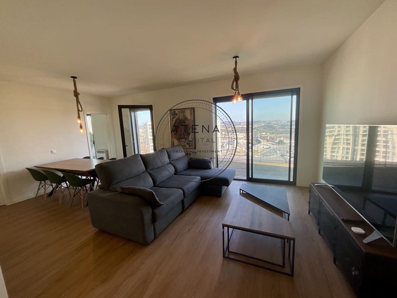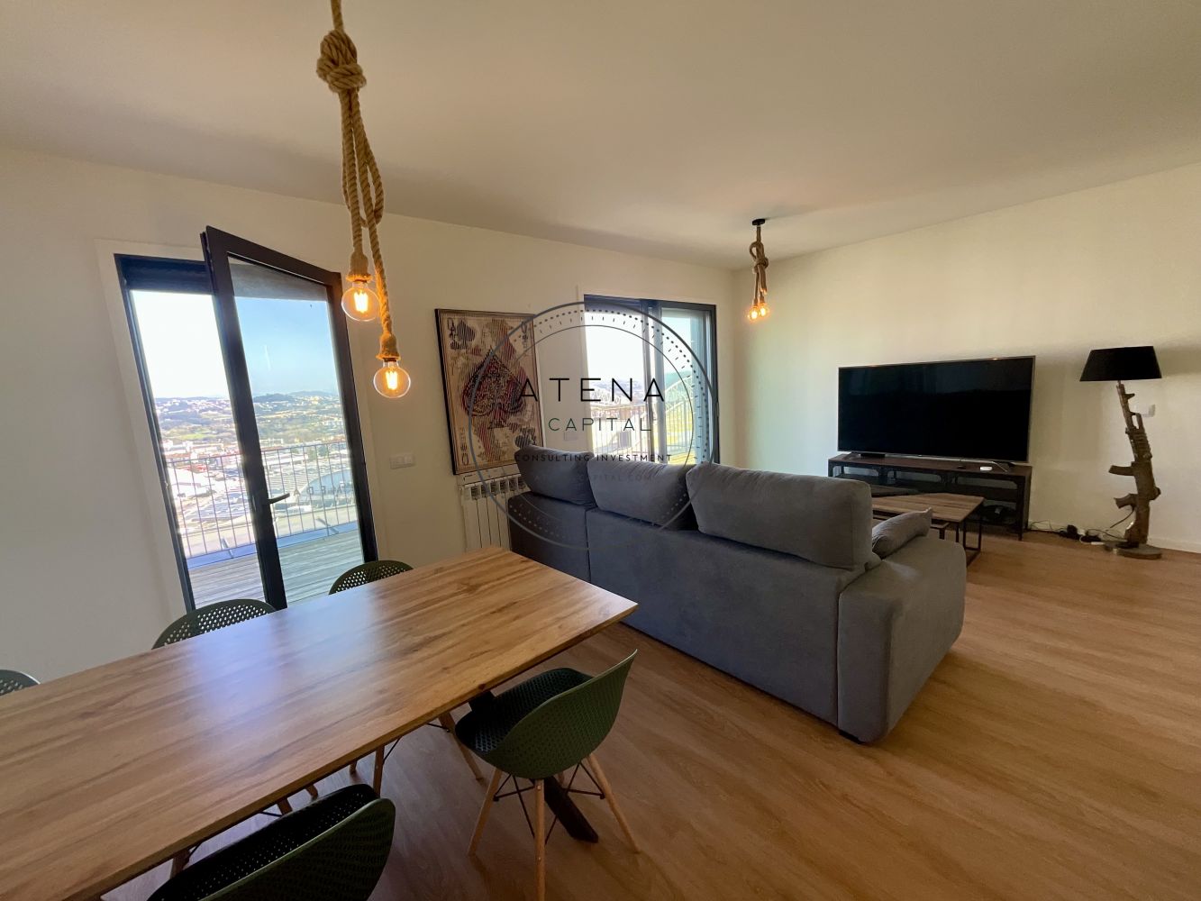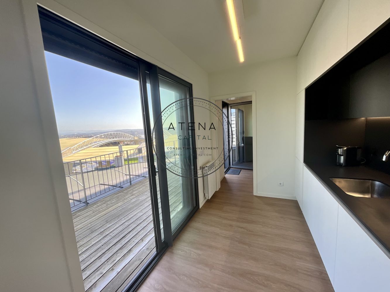 Apartamento T2 mobilado para arrendamento na Residência Antas Green, Porto. Apartamento situado no 7.º andar, com uma terraço excecional de 31 m², com vista desafogada para o rio e para o Estádio do Dragão (interior do estádio). Exposição solar Este. O imóvel tem 100 m² de área interior e é composto por sala ampla, cozinha totalmente equipada, dois quartos, sendo um quarto em suite e o segundo quarto com casa de banho completa mesmo em frente. Todas as divisões, sem exceção, têm acesso direto ao terraço como a sala, a cozinha e ambos os quartos. Pavimento em madeira em todo o apartamento. Quartos com roupeiros embutidos. Roupeiros adicionais na zona de entrada e áreas de circulação. Cozinha totalmente equipada com forno, placa, micro-ondas, frigorífico e restantes eletrodomésticos, conforme fotografias. Aquecimento central ao gás natural. Inclui 1 lugar de garagem e 1 arrecadação. Prédio com dois elevadores. A residência Antas Green é um condomínio moderno, com áreas comuns cuidadas, jardins e excelentes acessos. Localização extremamente central e prática, mesmo em frente ao Alameda Shopping e ao Continente, com metro à porta, várias linhas de autocarro, escolas, colégios, creches, serviços e comércio nas imediações. O apartamento é arrendado totalmente mobilado. A sala inclui mesa, cadeiras, móvel de televisão e sofá. Televisão não incluída. Os quartos incluem camas, colchões e mesas de cabeceira. Cozinha completamente equipada. Contrato de arrendamento com duração mínima de 1 ano. Arrendamento mobilado. Serão solicitados documentos comprovativos de rendimentos mensais. Caso os rendimentos apresentados não sejam suficientes, será exigido fiador, que deverá igualmente apresentar comprovativos de rendimentos. Condições de entrada: um mês de renda, um mês de caução e um mês correspondente ao último mês do contrato. Disponível para visitas mediante marcação e exclusivamente após reunião telefónica.