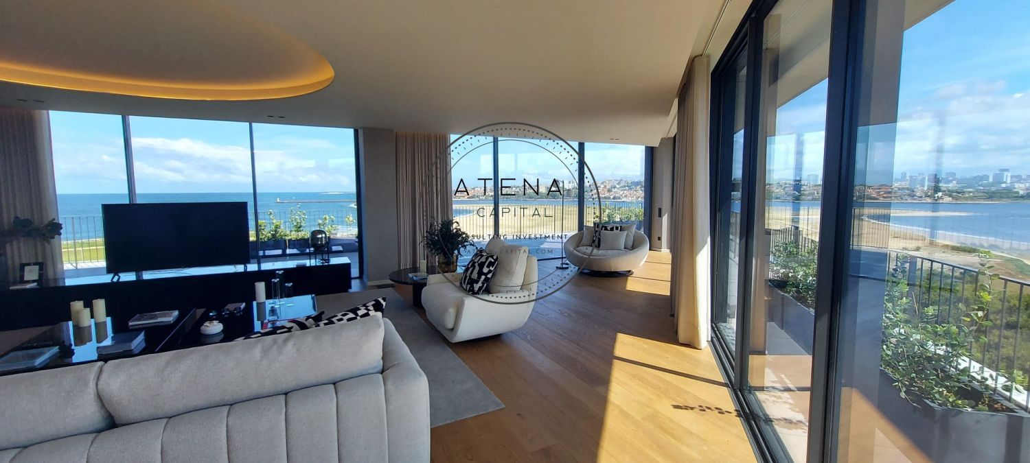 Apresentamos um penthouse de luxo, onde cada divisão se abre para varandas com vistas a 320° absolutamente deslumbrantes sobre o rio Douro, o mar Atlântico e a cidade do Porto, o parque paisagístico, a reserva natural, a marina, a Ponte da Arrábida e a Foz do Porto, garantindo panoramas verdadeiramente imparáveis. Área exterior – varandas: 151,0 m² Área interior (habitação): 229,2 m² Área total da fração: 380,2 m² Tipologia: T4 (T5 transformado em T4) – Penthouse Andar: Último andar Estacionamento: Box fechado para três viaturas incluído Áreas das divisões Hall de entrada privativo: 6,0 m² Sala / Sala de jantar: 85,7 m² Cozinha: 22,4 m² Lavandaria: 2,7 m² Zona de dormir Suite principal: 15,9 m² Casa de banho da suite: 3,4 m² Suite 2: 14,9 m² Casa de banho da Suite 2: 7,0 m² Quarto 3: 9,9 m² Quarto 4: 10,6 m² Quarto / Escritório: 8,3 m² Sanitários & circulação Casa de banho comum: 3,8 m² WC de hóspedes: 3,9 m² Hall privado (zona noite): 6,7 m² Hall de serviço: 2,6 m² Exteriores Varandas panorâmicas: 151,0 m² incluindo a varanda principal contígua à sala e às áreas de receção Pontos estratégicos essenciais Penthouse de exceção localizada na Na Seca do Bacalhau, em zona premium e exclusiva Vistas panorâmicas irreversíveis sobre o Oceano Atlântico, o rio Douro, um parque paisagístico e uma reserva natural protegida Último andar, sem vis-à-vis, garantindo intimidade e total tranquilidade Áreas de receção com quase 110 m², abertas para amplas varandas Distribuição fluida entre zonas sociais e zonas privadas Box fechado para três viaturas, uma raridade nesta zona A poucos minutos do Porto, das praias e dos cais do Douro Descrição do penthouse Este penthouse T4 exclusivo, desenvolvido a partir de um T5, com 229,2 m² de áreas interiores e 151 m² de varandas, apresenta uma organização excecional em torno de volumes generosos e luminosidade omnipresente. A zona social de 85,7 m², verdadeiro coração do penthouse, acolhe sala e sala de jantar num espaço elegante e aberto, diretamente ligado às varandas panorâmicas. A cozinha de 22,4 m², contemporânea e funcional, integra-se perfeitamente neste conjunto, complementada por uma lavandaria independente. A zona de dormir dispõe de uma suite principal, uma segunda suite, bem como vários quartos polivalentes, ideais para família, convidados ou como espaço de escritório, todos pensados para garantir conforto, privacidade e funcionalidade. Os 151 m² de varandas prolongam naturalmente os espaços de vida, permitindo desfrutar plenamente das vistas excecionais sobre o Oceano, o Douro, o parque e a reserva natural, num enquadramento raro e protegido. Este imóvel constitui um ativo imobiliário de referência, combinando áreas generosas, localização estratégica, vistas excecionais e qualidade de vida premium, às portas do Porto.