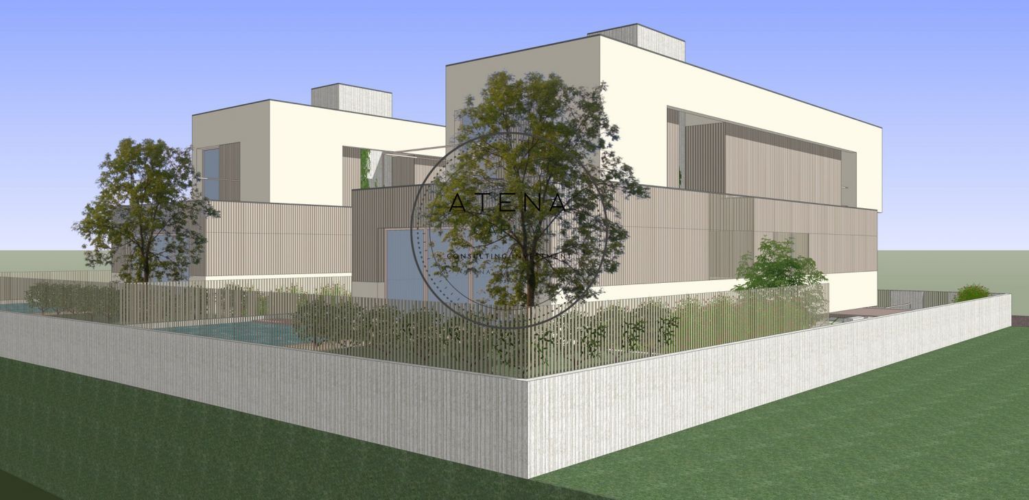 Moradia contemporânea V3 com piscine, com 281 m2 de área bruta de construção implantada num terreno de 327 m2 localizada na Madalena Vila Nova de Gaia muito perto de Canidelo e a poucos minutos da praia Com quatro frentes solares esta moradia oferece excelente luminosidade e elevada privacidade Características principais Terreno de 327 m2 Área bruta de construção de 281 m2 Tipologia V3 com três suites Escritório independente Sala ampla em open space com cozinha integrada Piscina privativa Jardim Garagem fechada para dois carros Distribuição por cave rés do chão primeiro piso e cobertura Distribuição Cave com estacionamento para dois carros zona técnica e arrumos Rés do chão com hall sala ampla com grandes vãos envidraçados cozinha em open space zona de refeições escritório e acesso direto ao jardim e à piscina Primeiro piso com três suites todas com casa de banho privativa e excelente privacidade Cobertura com zona técnica e possibilidade de utilização consoante projeto Acabamentos e materiais Caixilharia minimalista Cortizo Cor Vision Plus e Cor 3000 RPT Escada com estrutura metálica e degraus em madeira natural Portões exteriores em alumínio Extrusal com automatismo Soalho flutuante de alta qualidade Armários em MDF folheado a madeira natural tom castanho Portas e mobiliário em MDF lacado RAL 9001 Cozinha com bancada em Silestone lava louça RODI Box Lux e eletrodomésticos Bosch ou equivalente Instalações sanitárias com loiças SANINDUSA Urb y bases de duche em mármore compacto feitas à medida resguardos em vidro laminado e torneiras BRUMA incluindo sistemas termostáticos Conforto e tecnologia garantidos por bomba de calor ventiloconvetores blackouts interiores e aparelhagem Efapel Siza Vieira Construção pensada para elevada eficiência energética conforto térmico e durabilidade Localização privilegiada na Madalena Vila Nova de Gaia junto a Canidelo zona residencial calma e valorizada perto de comércio serviços escolas e principais acessos rodoviários Entrega prevista para o final de 2026